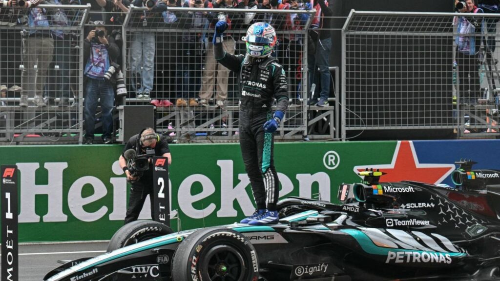 George Russell terminou em segundo lugar, completando mais uma dobradinha da Mercedes na temporada.